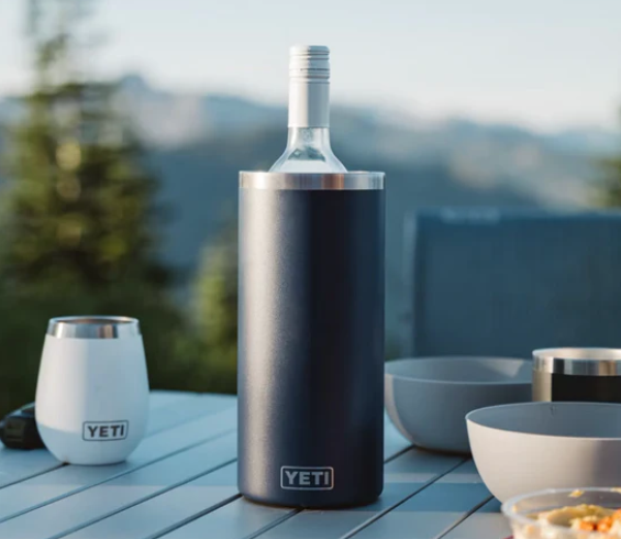 Designed for wine nights in the wild, this cold-holding wine chiller is durable enough to withstand any condition, and sized to fit nearly any wine or champagne bottle.